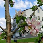 Die 1-Zimmer-Ferienwohnung Kleine Auszeit verfügt über eine Terrasse und liegt in etwa 15 Autominuten Entfernung von der Burg Metternich. Dieses 53 m^2 große Apartment bietet Ausblicke auf den Garten.